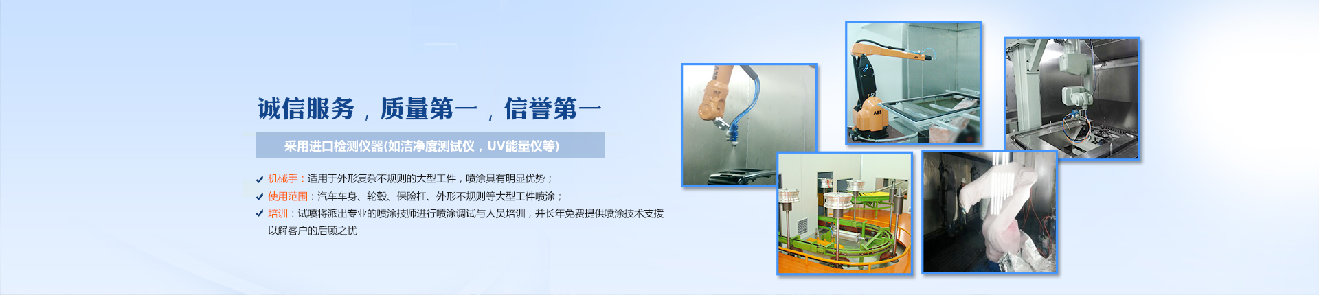 汽車(chē)配件噴涂生產(chǎn)線(xiàn)解決方案適用于:汽車(chē)內(nèi)飾件、汽車(chē)外飾件、汽車(chē)保險(xiǎn)杠、汽車(chē)導(dǎo)航儀等工件多角度噴涂